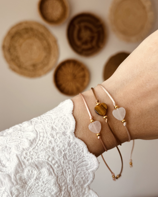 De armbanden zijn verstelbaar met een subtiel schuifknoopje.