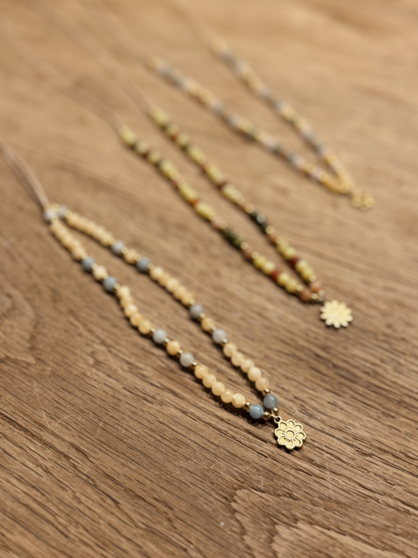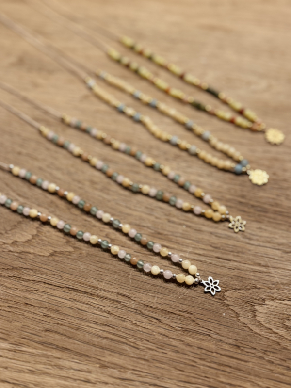Ketting - Pastel FlowerEdelstenen: Jade, Rozenkwarts, Aventurijn en Zonnesteen